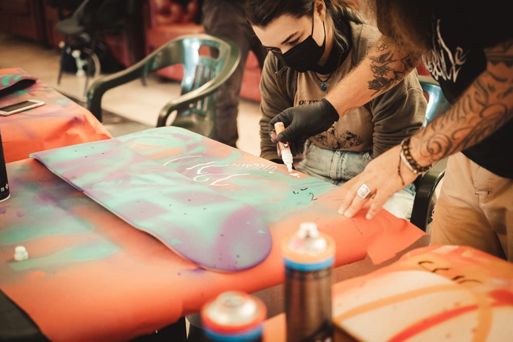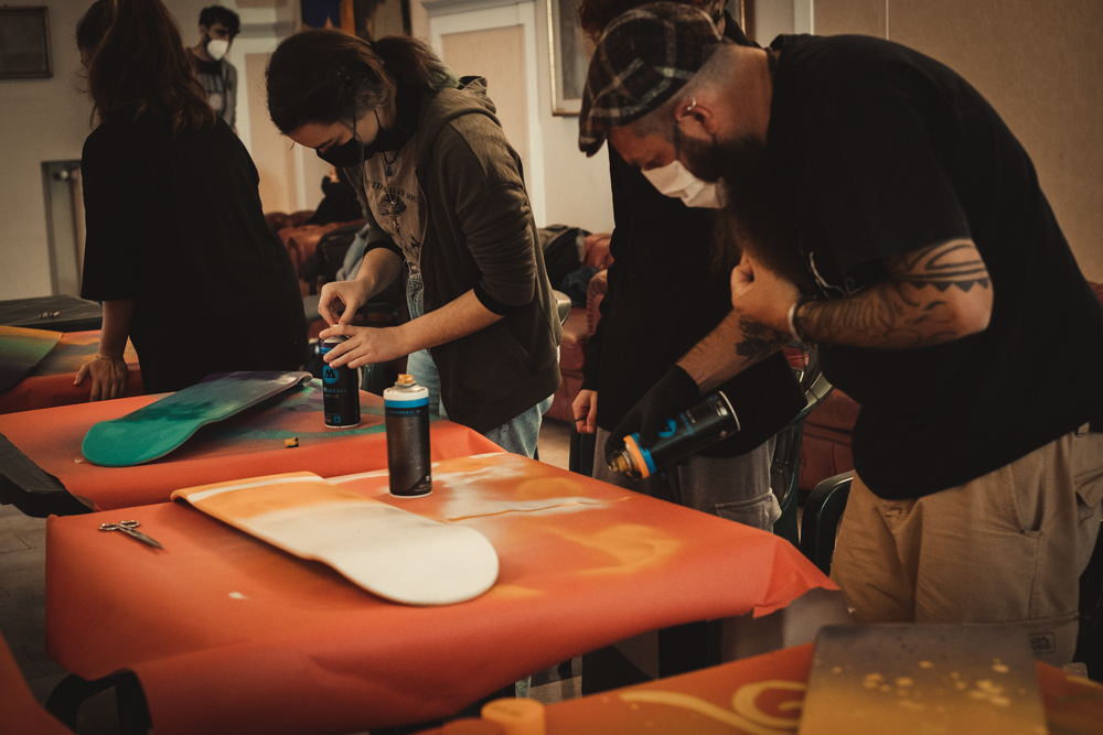 Un laboratorio di customizzazione di SKATEBOARD che ho fatto nel periodo del covid a Cremona. Una giornata Fatta di nuovi incontri e nuove esperienze ho realizzato due workshop di skate custom Lab in collaborazione con Ventaglio Blu Coop. Sociale I due workshop erano divisi per due fasce di età dai più piccini 8/11 e poi quelli più grandi tutti sopra i 15 anni , insieme abbia decorato delle tavole da skate fornite da rngdistribution ? . Una bella esperienza che spero si possa ripetere un grazie particolare a Dario che mi ha accompagnato per le vie centrali di Cremona che vi assicuro vale la pena di visitare, il duomo è bellissimo ,alla prossima ??