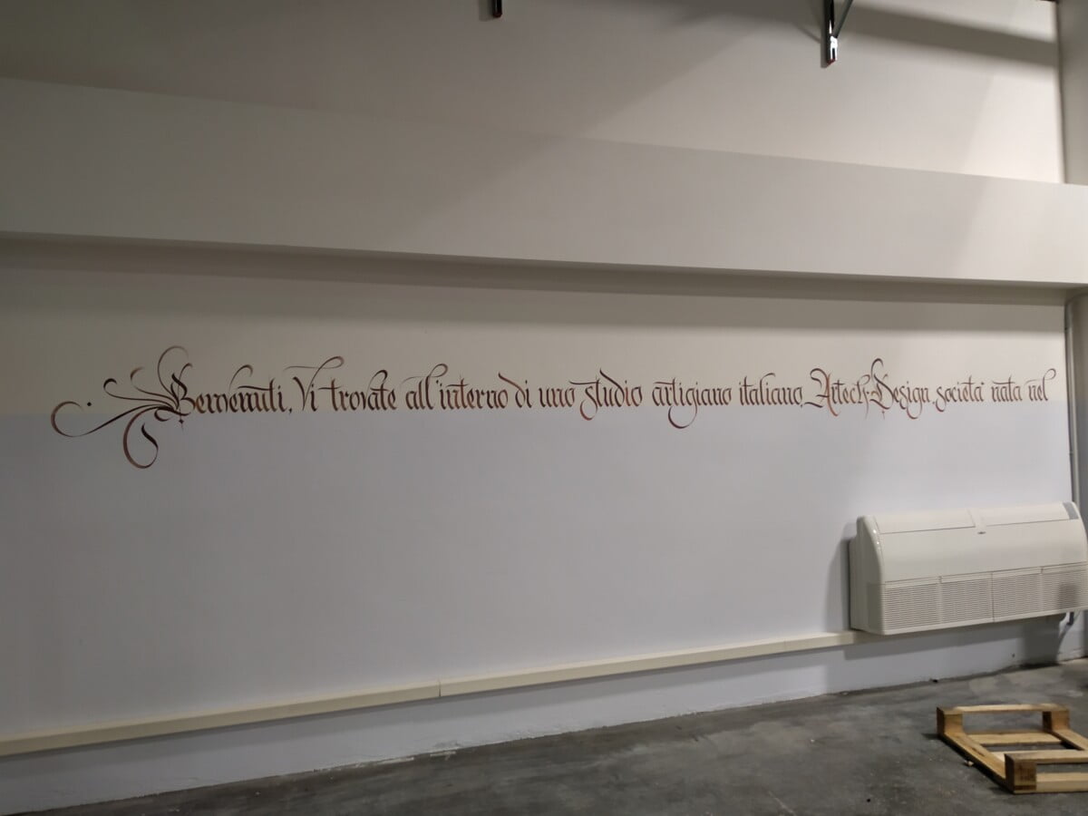 Decorazione murale presso Artech Design, (Sant’ Agata Bolognese) azienda leader nella verniciatura di Lamborghini e altri marchi di auto.