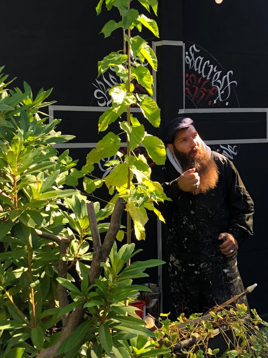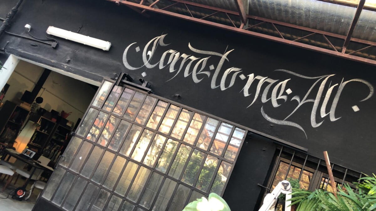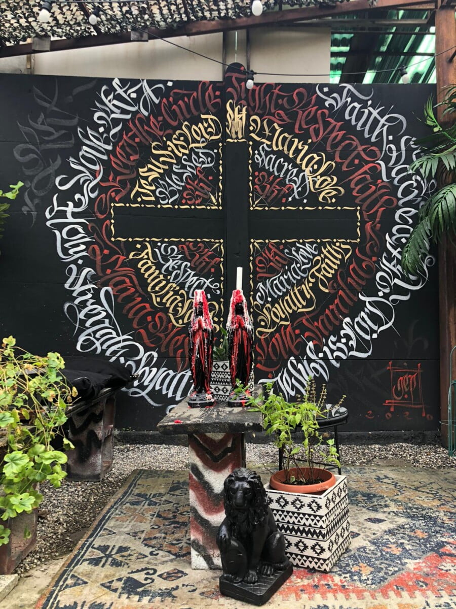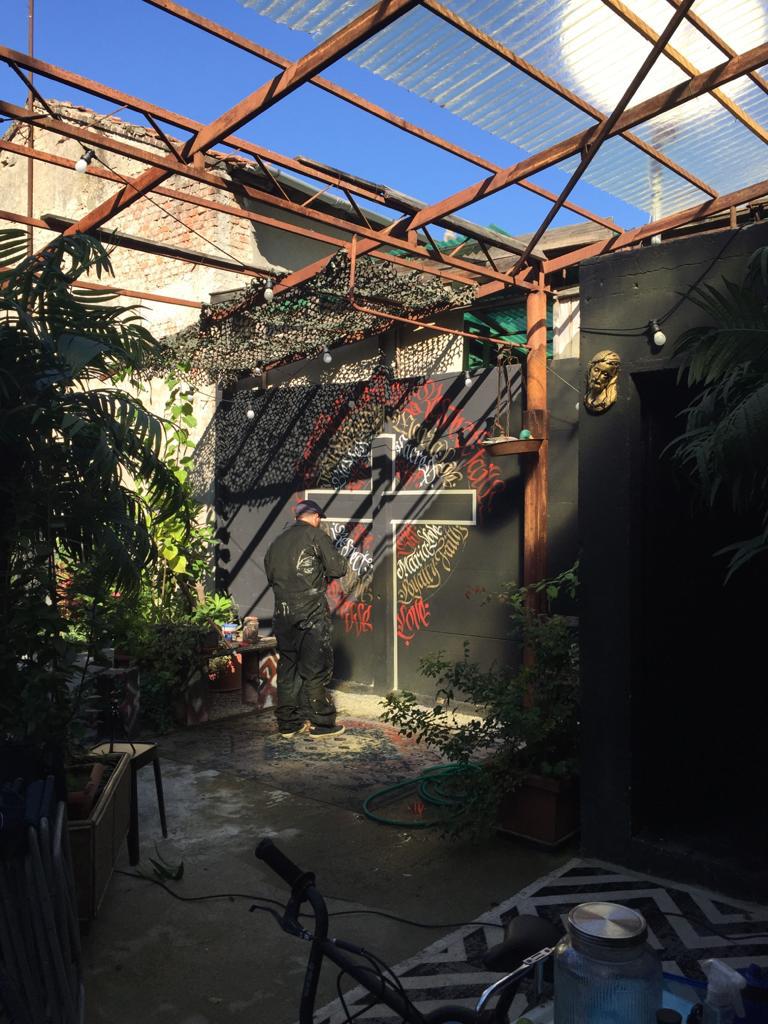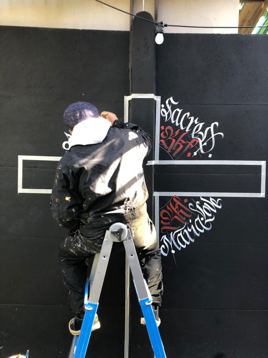 Decorazione calligrafica presso RKF Milano tecnica acrilico per esterno a pennello