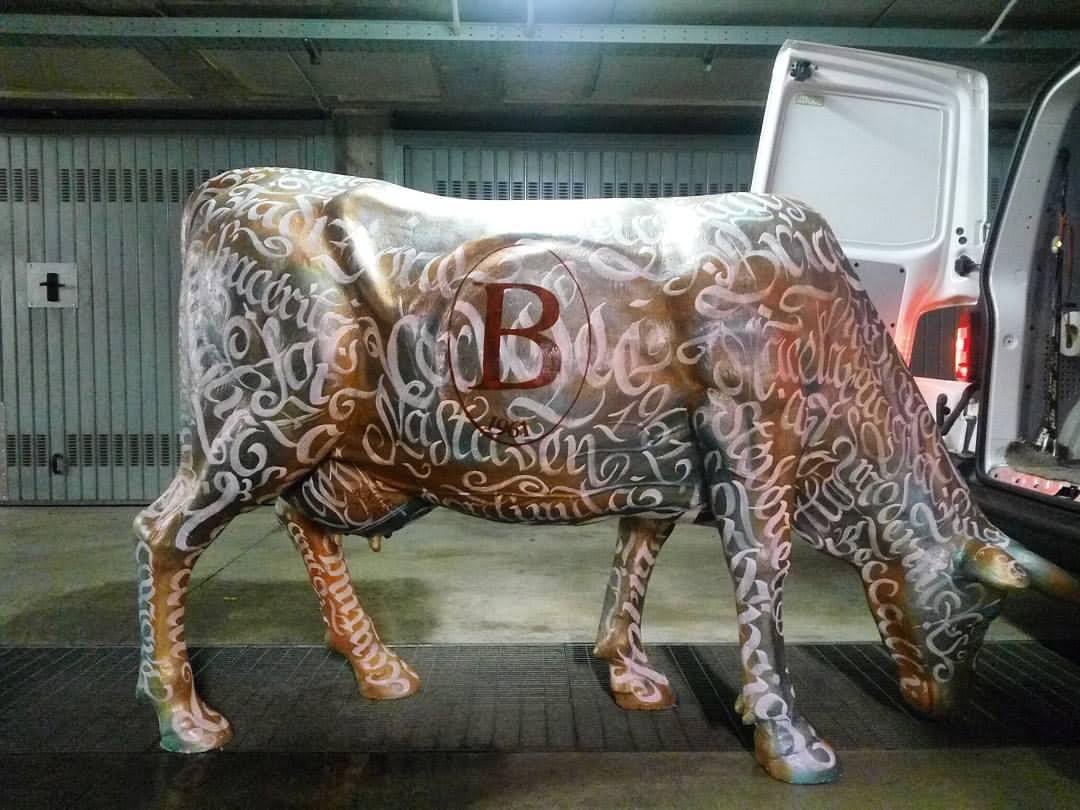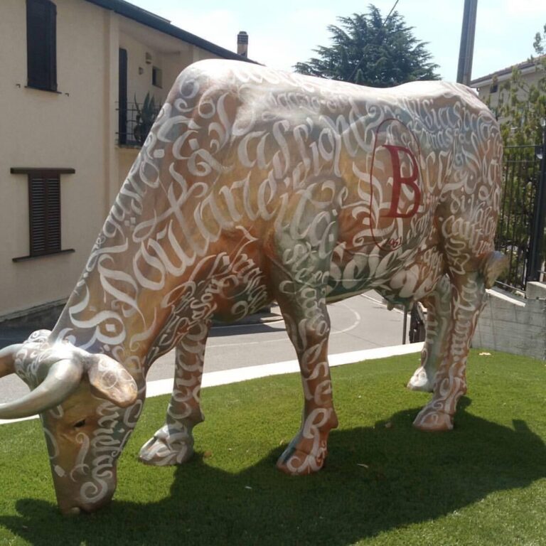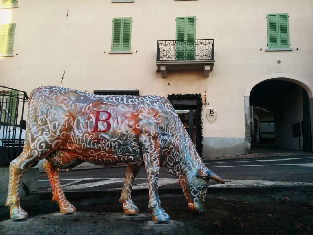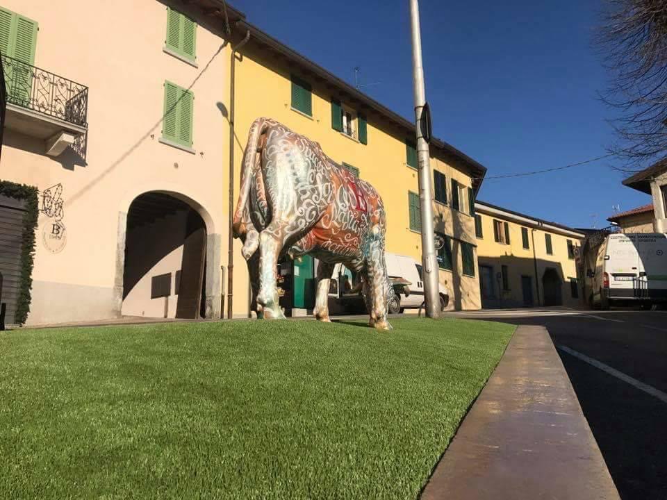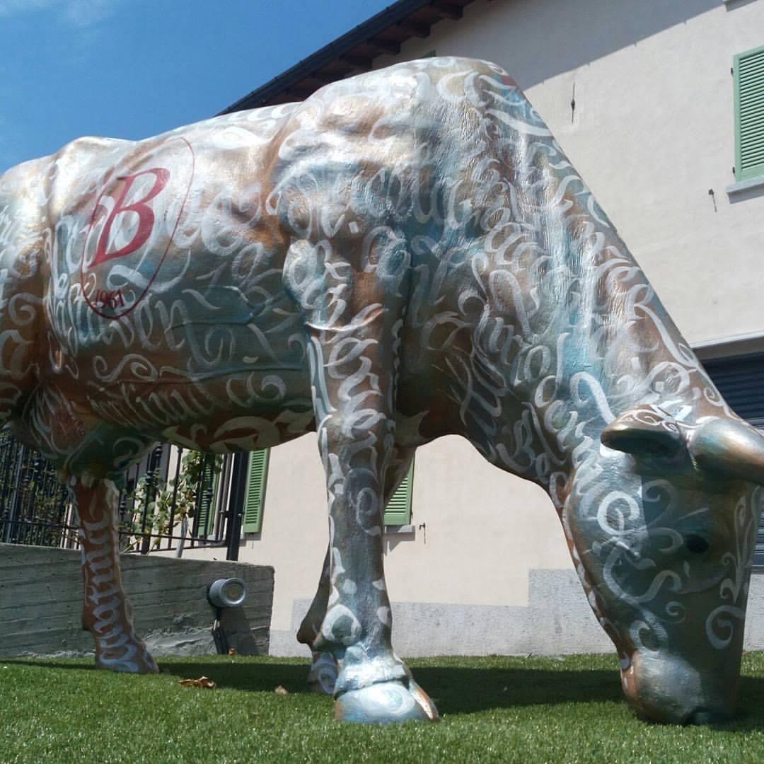 Mucca in resina commissionata da macelleria salumeria Beccalli .Realizzata con colori acrilici a pennello e protetta con resina B componente, potete andare a trovare la mucca dai Beccalli Via XXV Aprile, 58 • Costa Masnaga (LC)