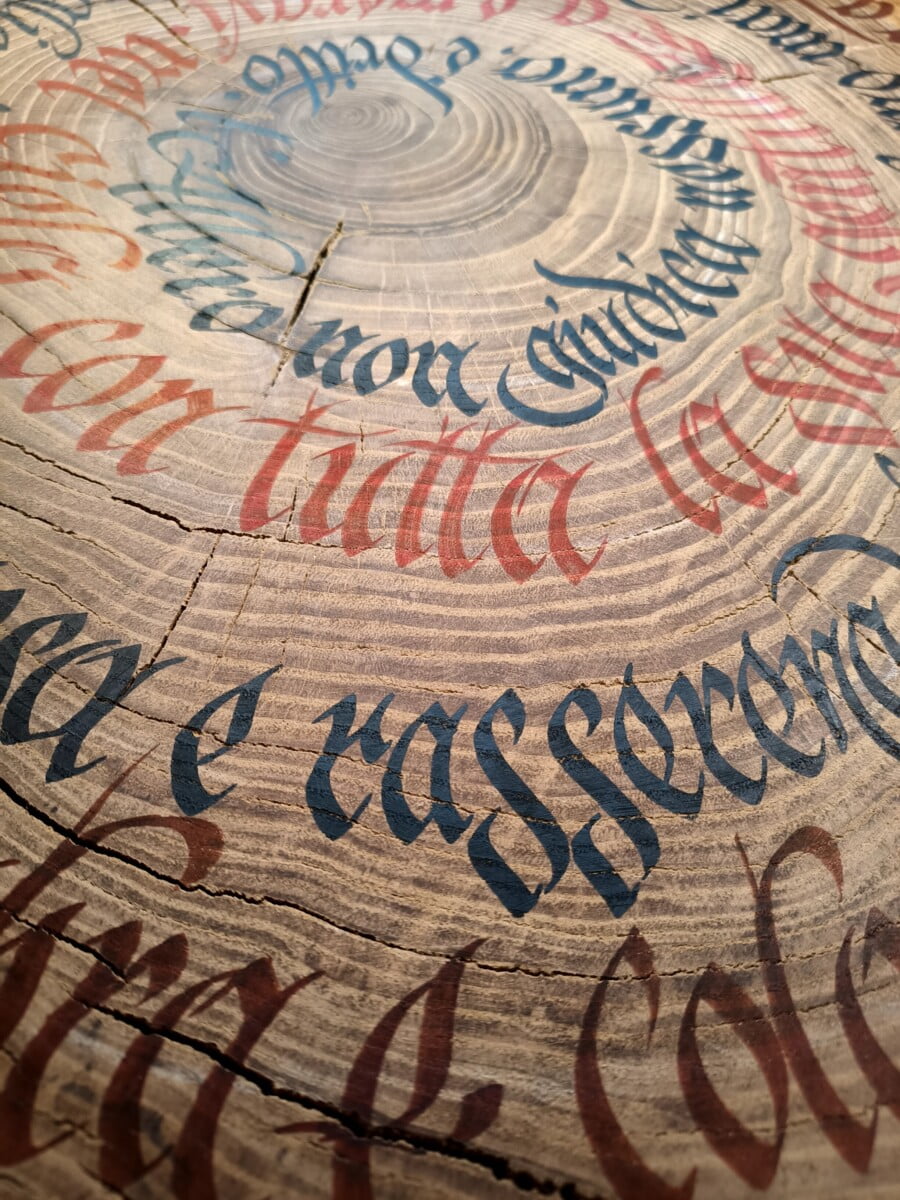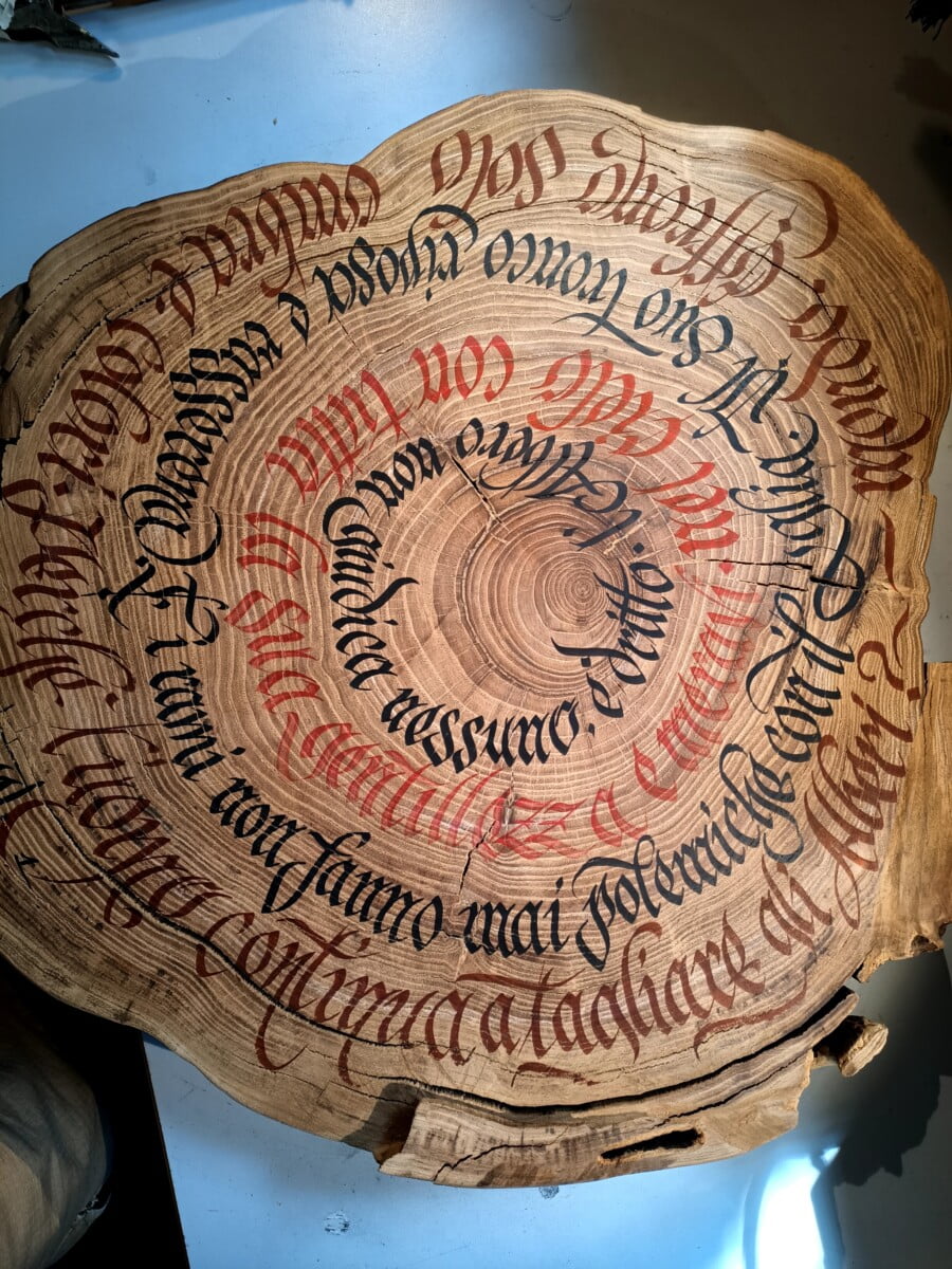 Questo bellissimo pezzo di Legno mi ha davvero rapito e non potevo che renderlo ancora piu’ bello con un aforisma che parla del legno  . Qua potete vedere il video della realizzazione