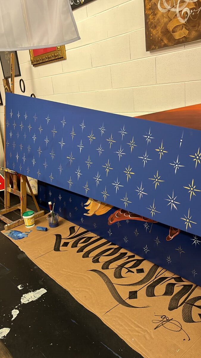 Decorazione su compensato marino con tecnica mista. E’ stata una bella sfida che per fortuna sono riuscito a vincere, e’ uscito un bellissimo lavoro e non lo dico solo io ma anche tutte le persone che hanno visto cambiare la facciata della loro chiesa!!!