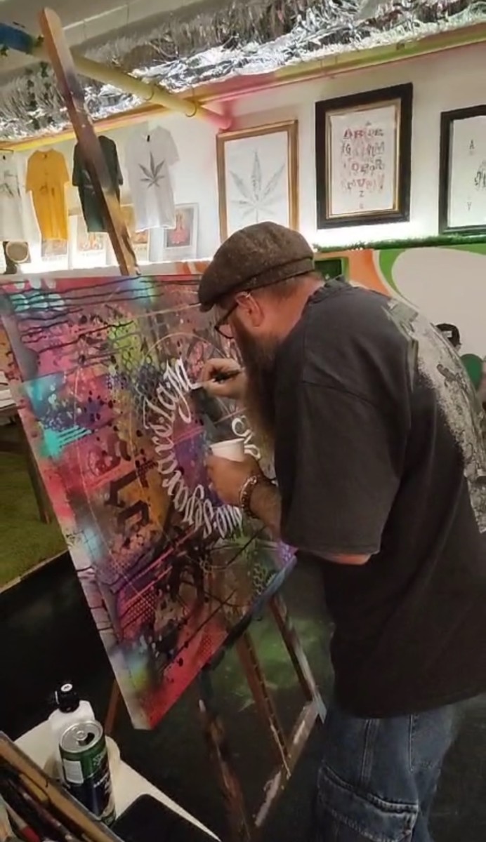 Tela 100×120 realizzata dal vivo a Milano presso THC MILANO per chiudere la mia mostra personale che si e’ svolta nel club per tre settimane a partire dal 21 settembre 2024.