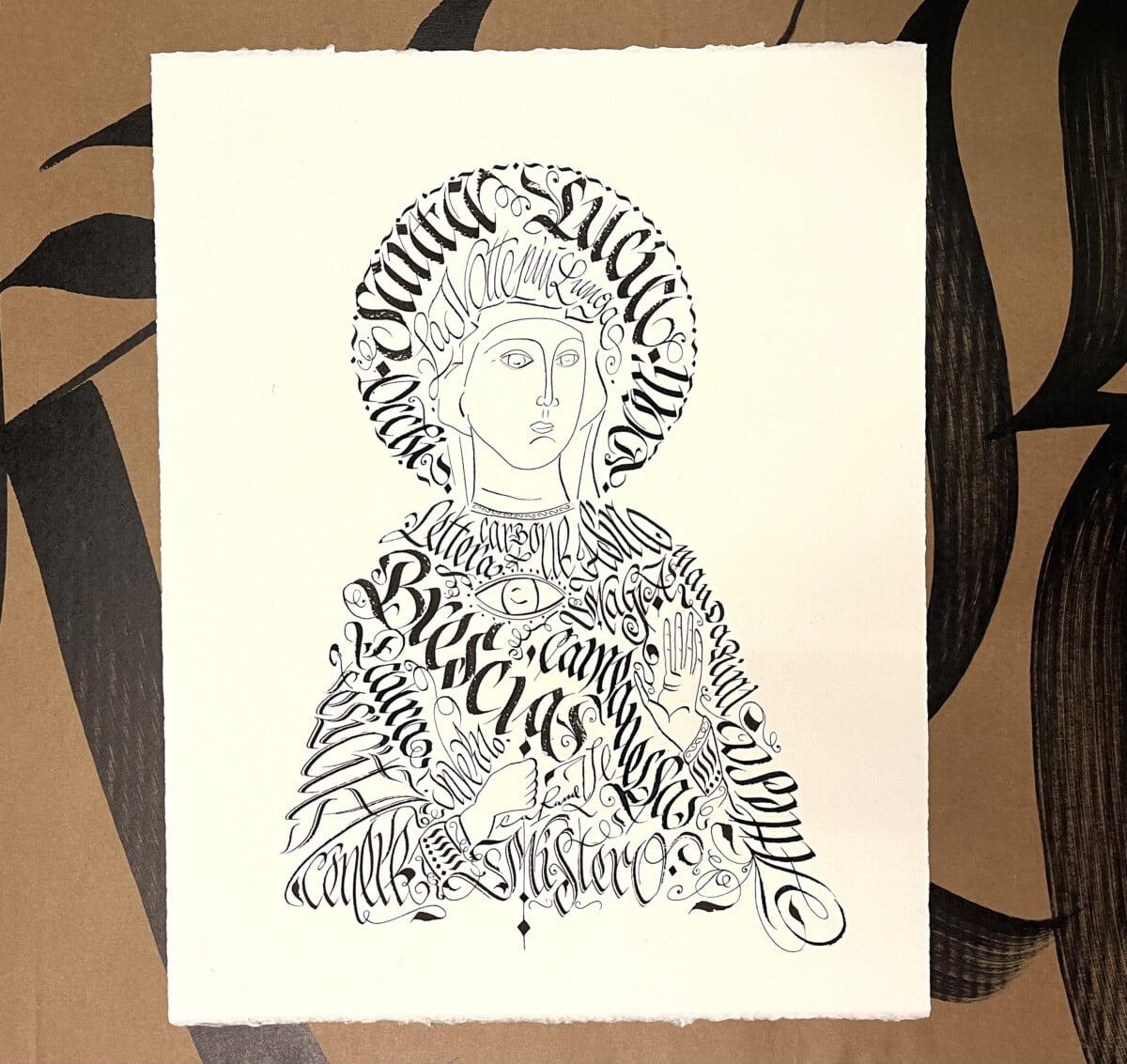 Realizzazione calligrammi personalizzati, pezzi unici non ripetibili, qui alcuni esempi dei lavori da me realizzati. Calligrammi su carta 100% cotone 300gr o 600gr o su carte piu’ leggere .